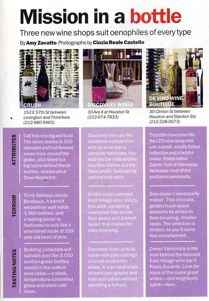 Major investor, Discovery Wines, 16 Avenue B, New York, New York 10009. We opened September 27, 2004 at another location and moved to our present address in 2011. Discovery Wines has received favorable reviews in New York Magazine, The New York Sun, Time Out New York, and in 2010 the Village Voice declared us the Best Wine Store in New York City! If you like wine, it’s worth a trip to the Lower East Side (two blocks from the Second Avenue stop on the F train).